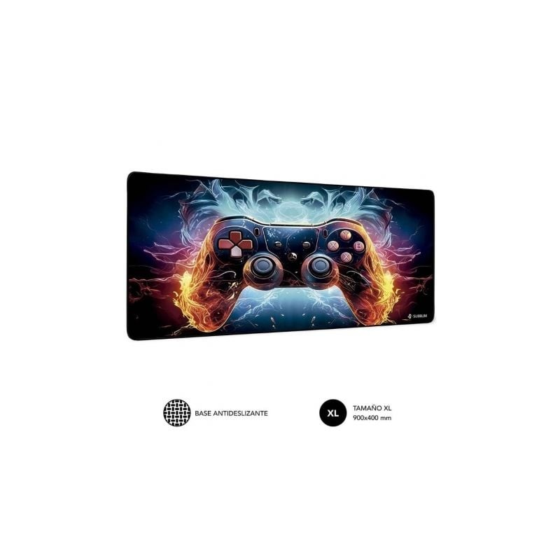 SUBBLIM GameCore XL Mouse Pad 900 × 400 × 3 mmAlfombrilla Gaming XXL con Base de Goma 85 % Antideslizante, Bordes Cosidos, Superficie Micro-Texturizada, Diseño Mando Fire-&-Ice, Impermeable y Lavable