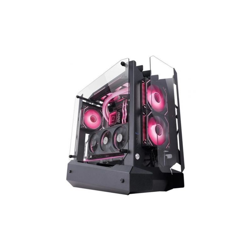 La MC-EDGE es una caja gaming ATX que rompe los esquemas tradicionales. Su diseño Open Air con triple panel de cristal templado no solo convierte tu setup en un espectáculo visual, sino que también ofrece una eficiencia térmica incomparable. A diferencia de las cajas cerradas, el diseño optimiza el flujo de aire para mantener tu PC gaming siempre fresco y funcionando al máximo rendimiento.