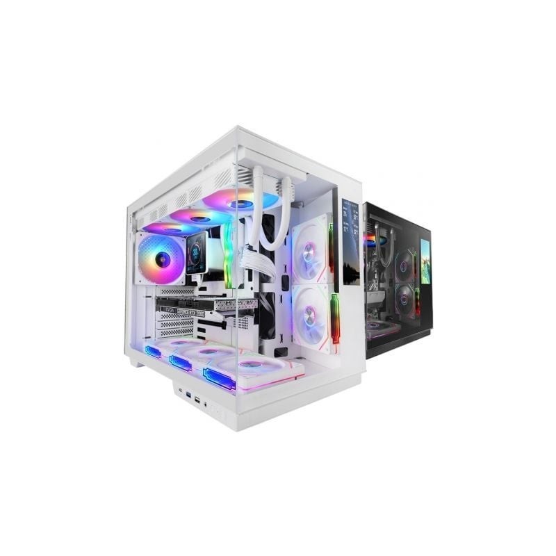 Descubre la MC-MIRAGE, una caja gaming ATX que lleva la personalización y el rendimiento a un nuevo nivel gracias a su exclusiva pantalla integrada LCD IPS de 7,2” y su elegante diseño panorámico en cristal templado. Con una estructura de doble cámara, compatibilidad avanzada y espacio para hardware de última generación, está creada para entusiastas, gamers y creadores que buscan un setup único, sofisticado y cargado de innovación.