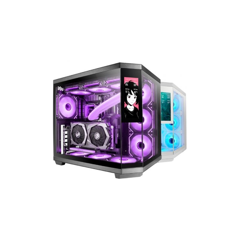 El panel IPS de 7,2” (360×960 px) va montado en el cristal central: monitoriza temperaturas y uso del sistema, o personalízalo con imágenes, animaciones o vídeos mediante su software de control. Tu torre se convierte en un panel de mando y en una pieza única de tu setup.