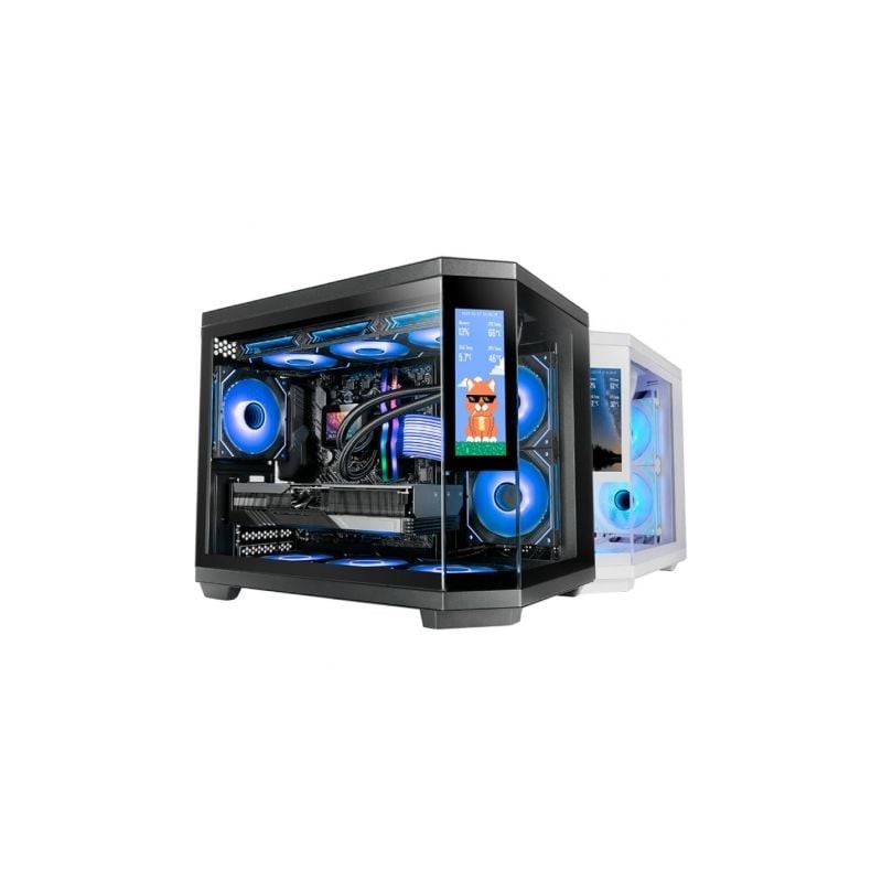 El panel IPS de 7,2” (360×960 px) te permite ver datos del sistema o mostrar contenidos a tu gusto desde el software de control. Un toque premium que convierte tu torre en una parte protagonista.