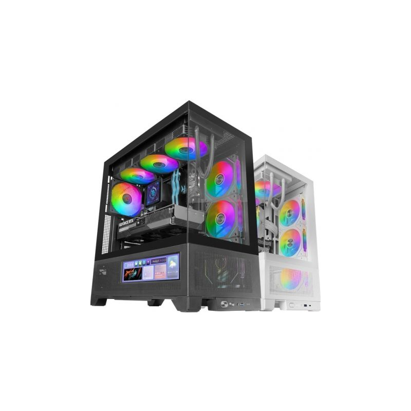 Descubre la MC-LCDX, una caja ATX que redefine tu configuración con una combinación única con funcionalidad avanzada y tecnología integrada. Equipada con una impresionante pantalla IPS de 9.16' con conexión HDMI, paneles de cristal templado frontal y lateral continuos y soporte total para refrigeración líquida de hasta 360 mm y panel inferior FULL MESH, esta torre está diseñada para destacar visualmente y rendir al más alto nivel.