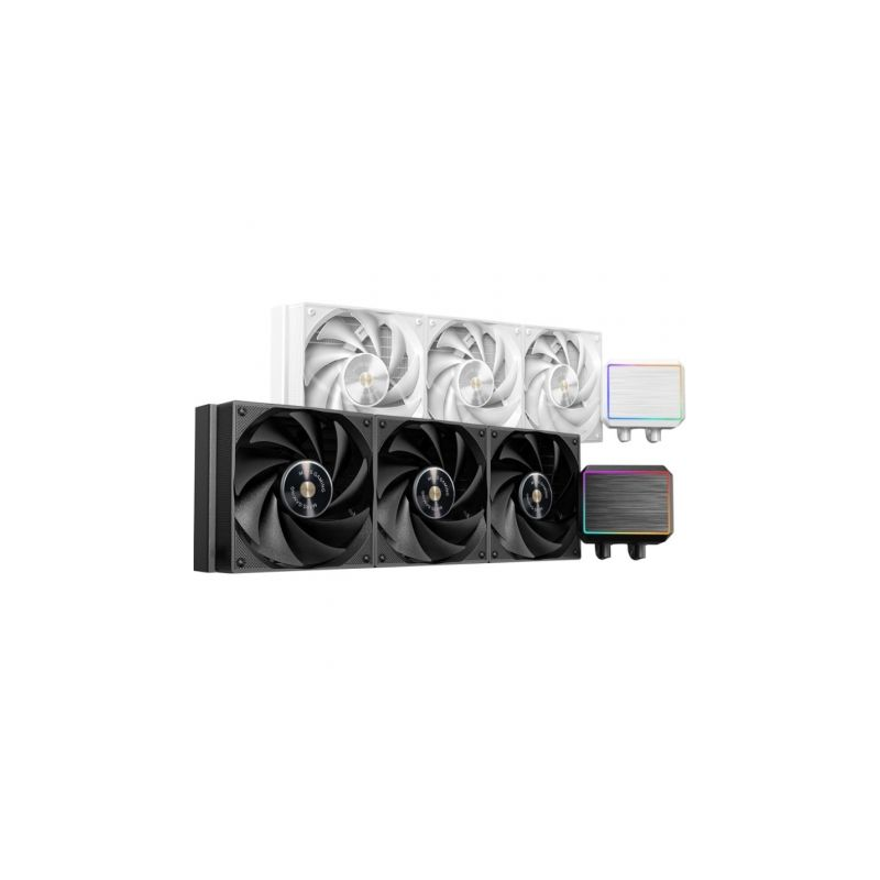 Con tres ventiladores de 120 mm con núcleo de cobre y aluminio, con rodamientos FDB para ofrecer un flujo de aire estable y silencioso, minimiza el ruido y maximiza la durabilidad, asegurando un funcionamiento fluido y discreto, perfecto para entornos gaming y profesionales.