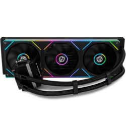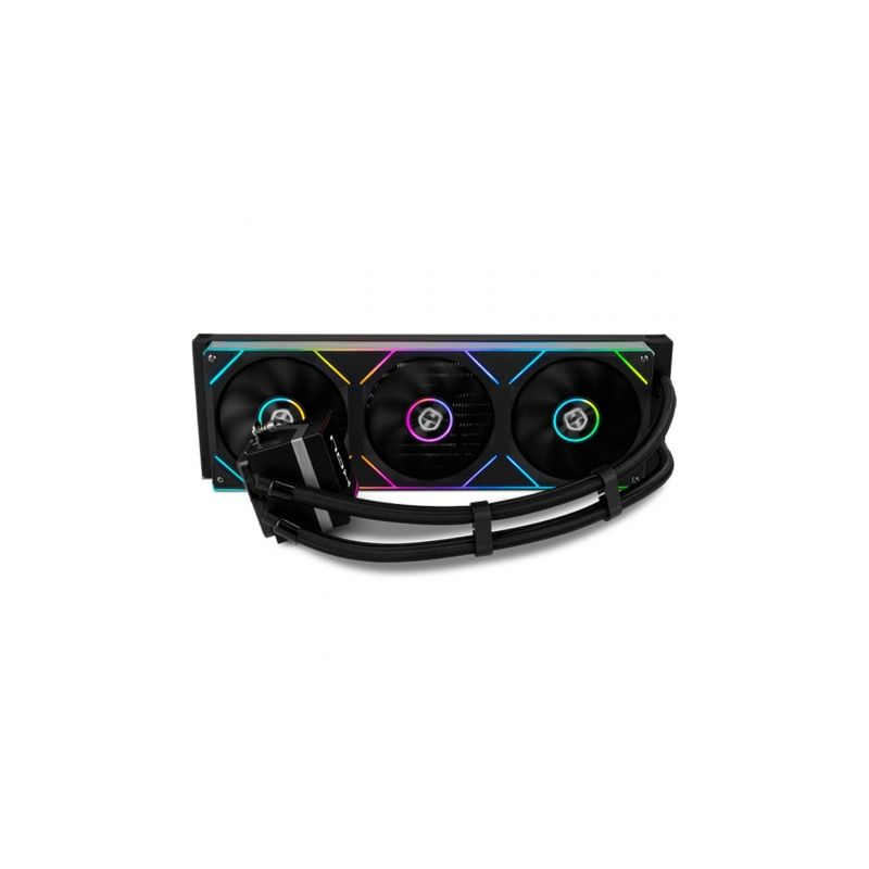 Disponible en color negro y blanco, este sistema de refrigeración líquida de Nox está compuesta por tres ventiladores con rodamiento hidraúlico, radiador de 360 mm y aletas aerodinámicas que facilitan la reducción de turbulencias entre radiador y ventilador.