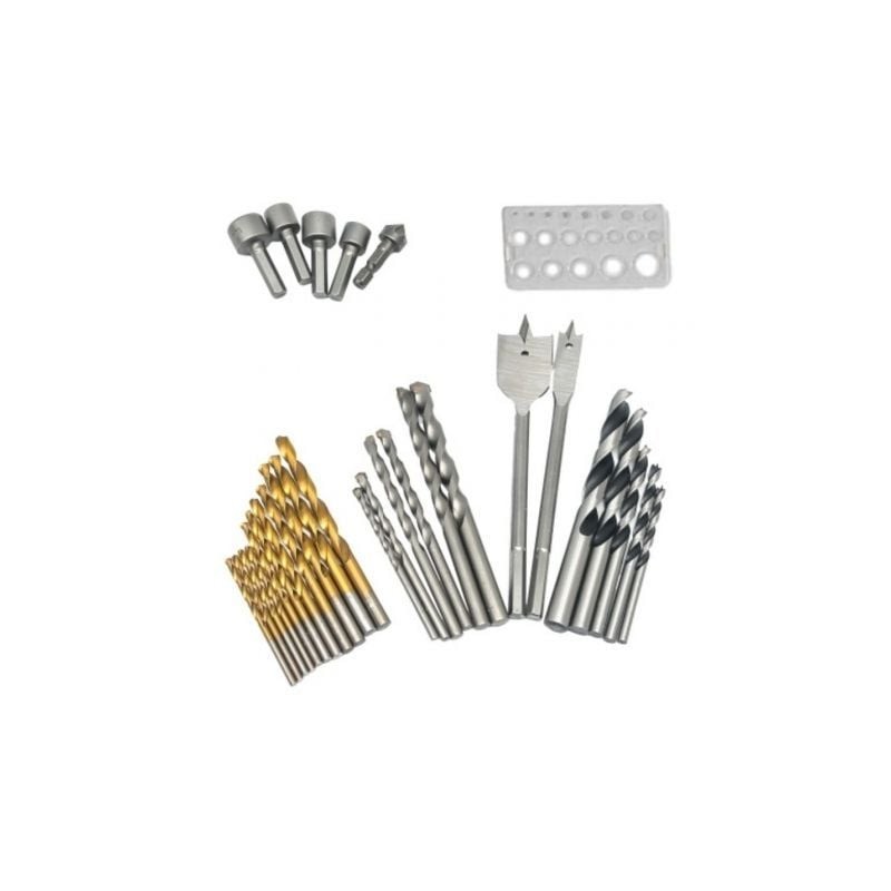- Incluye: 11 brocas helicoidales HSS 4241 con revestimiento de titanio, 5 brocas para madera, 6 brocas para mampostería, 2 brocas de pala para madera (16/22 mm), 5 tornillos de cabeza hueca y 1 plantilla de perforación. Todo lo que necesita en una sola caja. - Brocas de metal HSS 4241 con revestimiento de titanio
