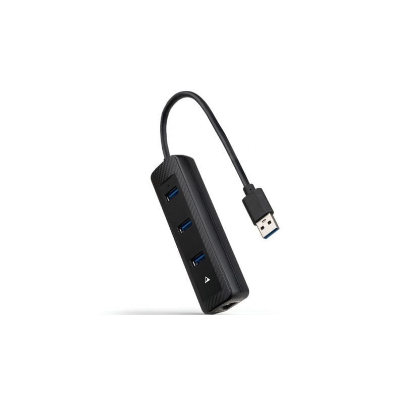 HUB USB-A 3.0 a 3x USB-A 3.0 + RJ45, USB-A/M - USB-A/M - RJ45/F, Negro, 15 cm