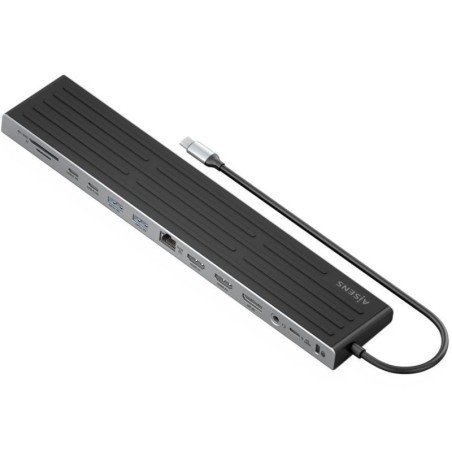 Hub USB Tipo-C Aisens ASUC-13P042-GR/ 2xUSB Tipo-C/ 1xUSB Tipo-C PD/ 2xUSB/ 2xHDMI/ 1xDisplayPort/ 1xLector de Tarjetas/ 1xJack