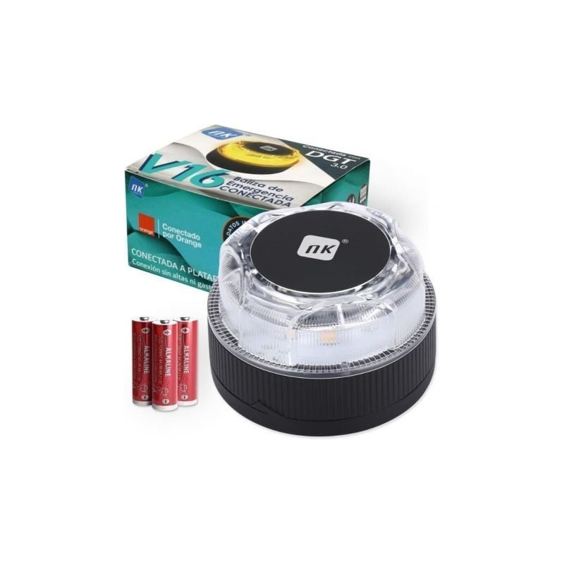 Luz baliza de emergencia para coche NK Connected EL2024-C1 V16/ Homologada/ Base Imantada/ Geolocalizable/ Funciona a Pilas