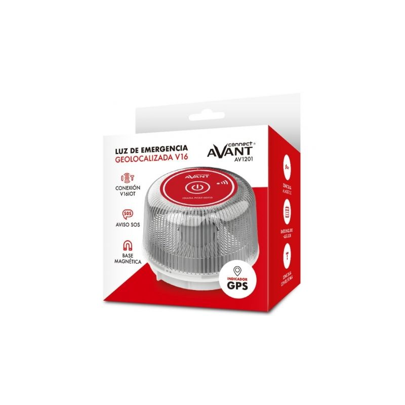 Luz baliza de emergencia para coche Avant V16 Connected AV1201/ Homologada/ Base Imantada/ Geolocalizable/ Funciona a Pilas