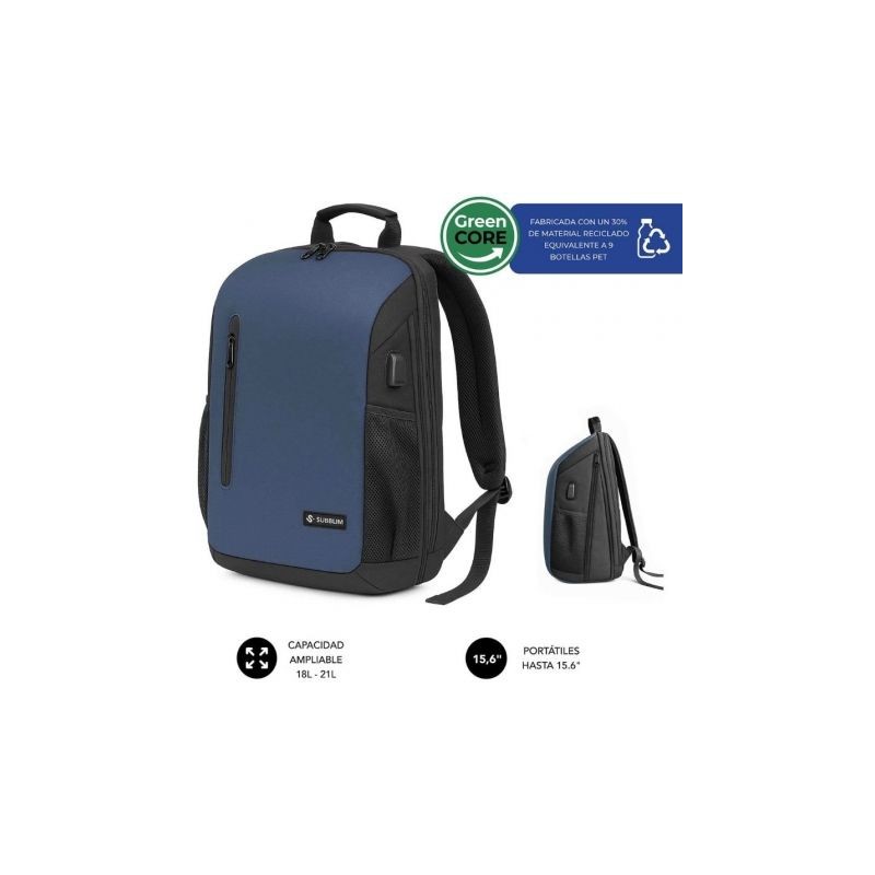 Mochila Subblim Xpand Air Padding Backpack para Portátiles hasta 15.6'/ Puerto USB/ Azul