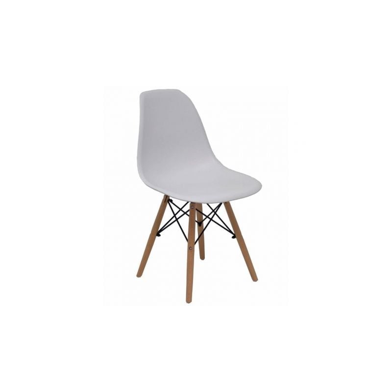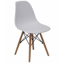 Silla fija con carcasa monobloque de PVC y patas de madera con metal.