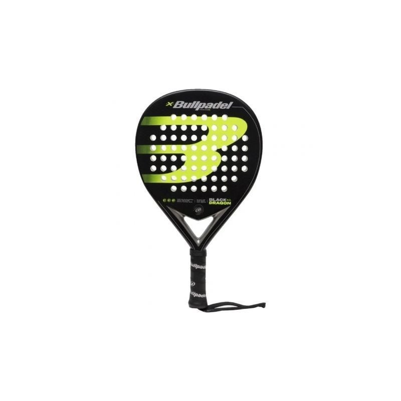 Tiene forma redonda. El marco y las caras presentan una tonalidad negro. Sobre el centro de los planos aparece con un cromatismo la 'B' típica de Bullpadel. Sobre el costado derecho de los dos haces aparece la leyenda 'BLACK DRAGON' con caracteres pequeños.