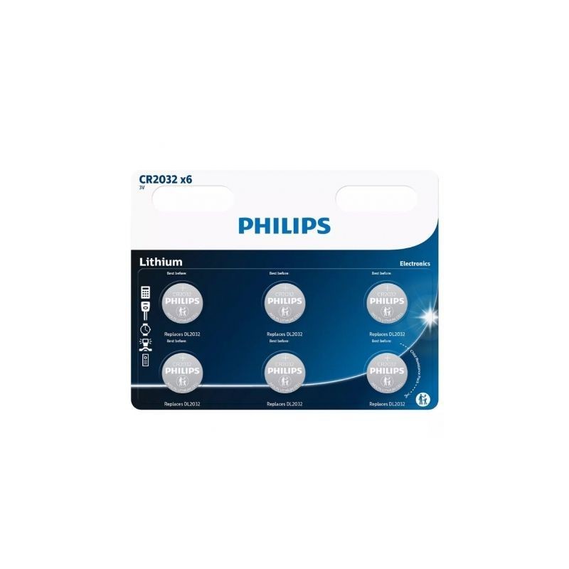 Pack de 6 Pilas de Botón Philips CR2032/ 3V