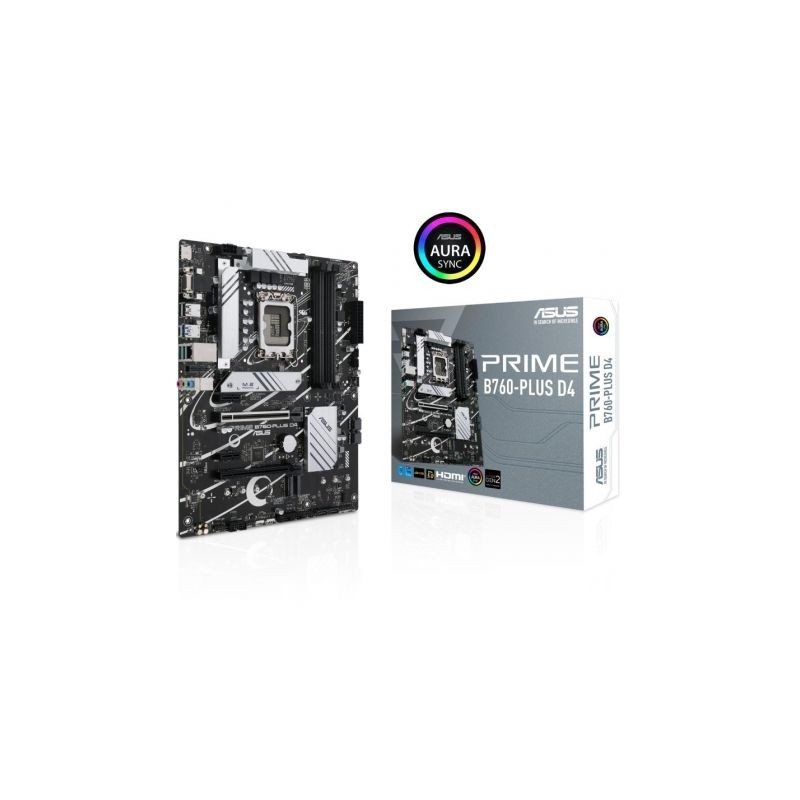ASUS Prime B760-PLUS D4, una placa base Intel® B760 LGA 1700 ATX con PCIe 5.0, tres ranuras PCIe 4.0 M.2, DDR4, Realtek 2.5Gb Ethernet, DisplayPort, VGA, HDMI® , SATA 6 Gbps, USB 3.2 Gen 2x2 Type -C ® , USB 3.2 Gen 1 Type-C ® frontal, compatible con Thunderbolt™ (USB4 ® ), Aura Sync- Zócalo Intel® LGA 1700: Listo para procesadores Intel® de 13.ª y 12.ª generación