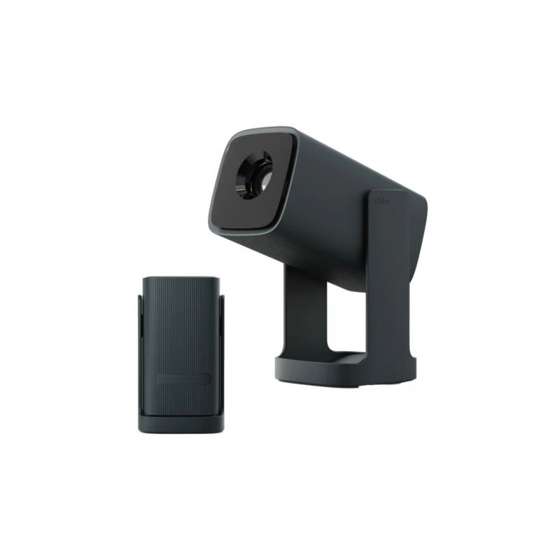 El exclusivo diseño Gimbal de 360° permite maniobrar libremente la lente en toda su extensión. Esto permite al proyector Cube 1 proyectar películas en una pared, en un ático inclinado o incluso en el techo, lo que favorece una visualización cómoda mientras se está tumbado. Este mecanismo también sirve para proteger la cámara (cuando está plegada) durante el transporte. Este diseño facilita la colocación de la montura sin necesidad de trípodes o almohadillas adicionales.