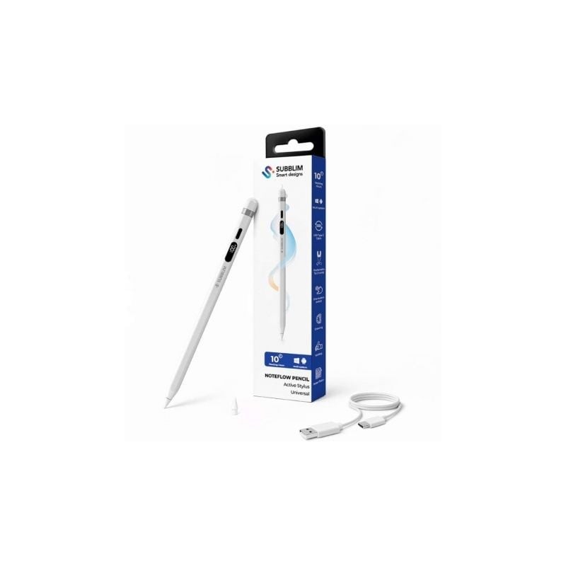SUBBLIM NoteFlow Pencil Universal – Stylus con pantalla de batería, USB-C y punta POM reemplazable – Compatible con Android, Windows y otras pantallas táctiles (smartphones, tablets)