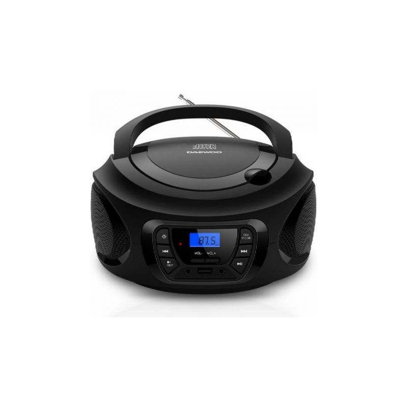 Daewoo DW3011 es una radio CD/FM tipo boombox con Bluetooth, USB, AUX y salida de auriculares, que integra 2×2 W en altavoces estéreo, ecualizador de 5 modos y pantalla LCD. Funciona a corriente AC o con 4 pilas C (LR14) para uso portátil.