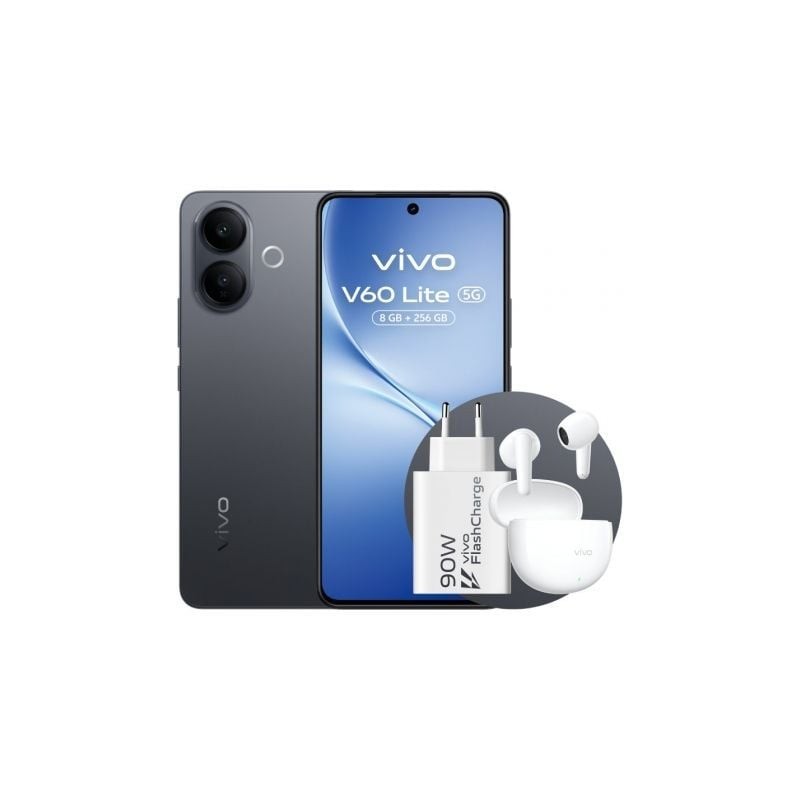 Smartphone Vivo V60 Lite 8GB/ 256GB/ 6.77'/ 5G/ Negro/ Incluye Cargador 90W y Buds