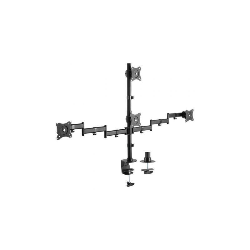 - Soporte de mesa eco giratorio e inclinable para 4 monitores (4 pivotes, 2 brazos) de 13”-27”