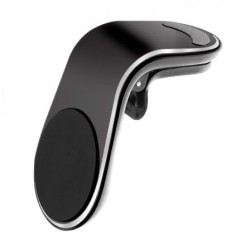 Soporte de móvil para coche con sujeción de pinza para la rejilla del aire acondicionado y colocación del dispositivo mediante imán magnético. El pack incluye dos placas magnéticas para adherir en la parte trasera del teléfono o entre teléfono y funda, de forma que pueda hacer contacto con la parte imantada del soporte y proporcionar una perfecta y cómoda sujeción.