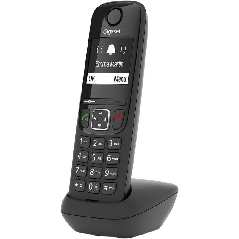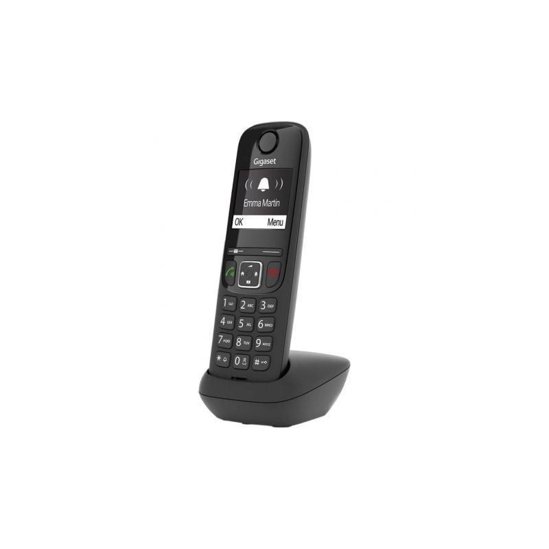 El Gigaset AS690 facilita la comunicación: con 14 horas de tiempo en conversación, puede estar seguro de que siempre podrá hablar con sus contactos en cualquier momento. La guía telefónica integrada del dispositivo puede contener hasta 100 nombres y números. Además, se enumeran automáticamente las últimas 25 llamadas y la hora en que sonaron. Con un tiempo de espera de 180 horas, las personas que llaman siempre podrán comunicarse con usted.